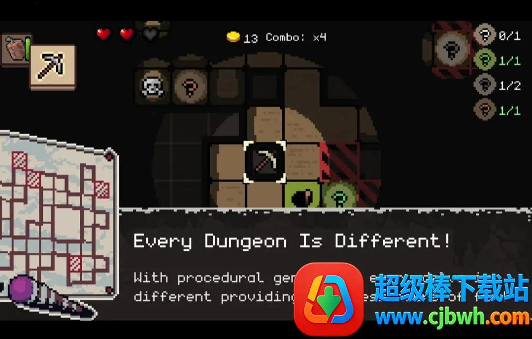3. 动态生成地牢:得益于程序生成的地牢布局,每次探索都独一无二,每个地牢的设计和房间分布不同,充满新鲜感与挑战,大大提升了重玩价值。