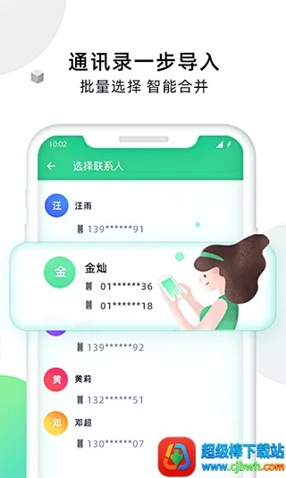 1. 一键互联换机:操作简单便捷,只需两步即可完成换机,通讯录还能一步导入,支持批量选择与智能合并。