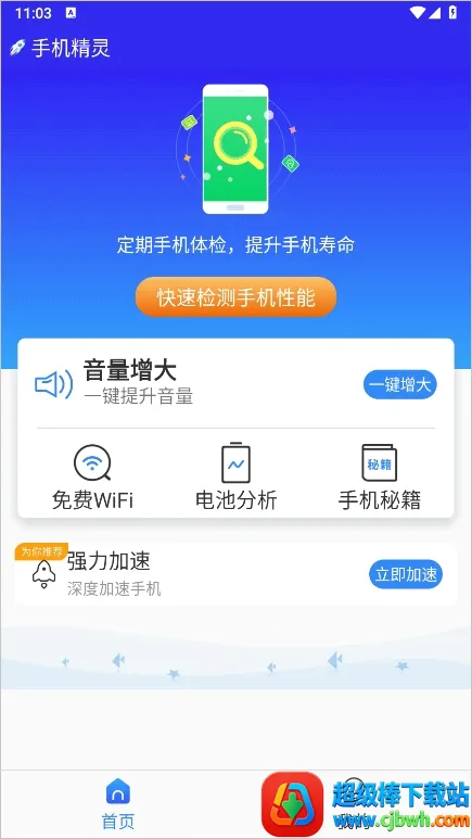 手机精灵APP2026最新版安卓版是功能强大的手机优化工具,能智能加速、解决卡顿,支持应用管理与通知清理。还可全盘查杀病毒、一键清理垃圾、优化电池续航,提供个性化方案,界面简洁,功能全面易操作。