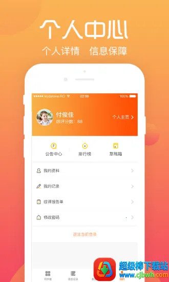 可进行“记录统计与报告单查看”,查看数据分析、个人资料、报告单、公告中心、排行榜等内容,知晓自身综合素质评价情况。
