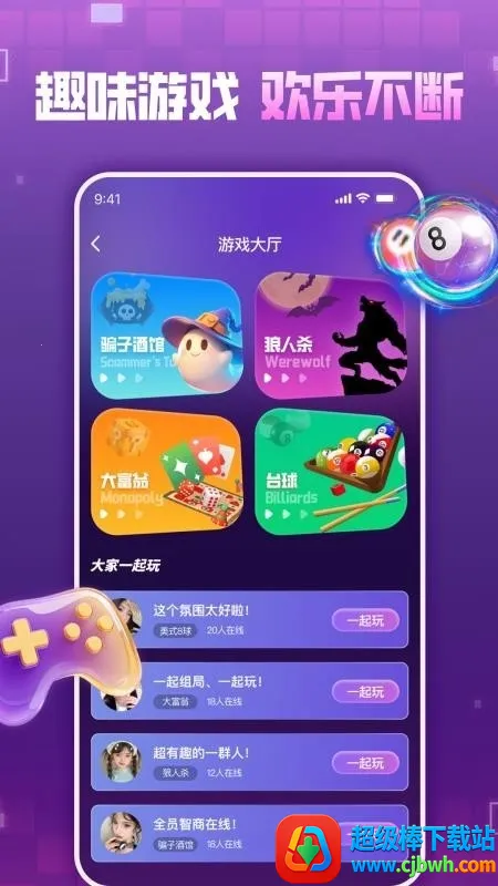 4. 多元化互动形式:除语音开黑外,提供小游戏、话题讨论等多元化互动,还有派对玩法,多人深夜狂欢互动。