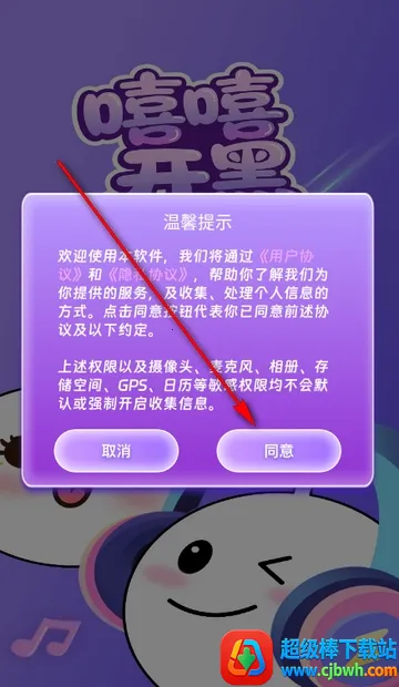 1、打开嘻嘻开黑app,点击同意隐私政策