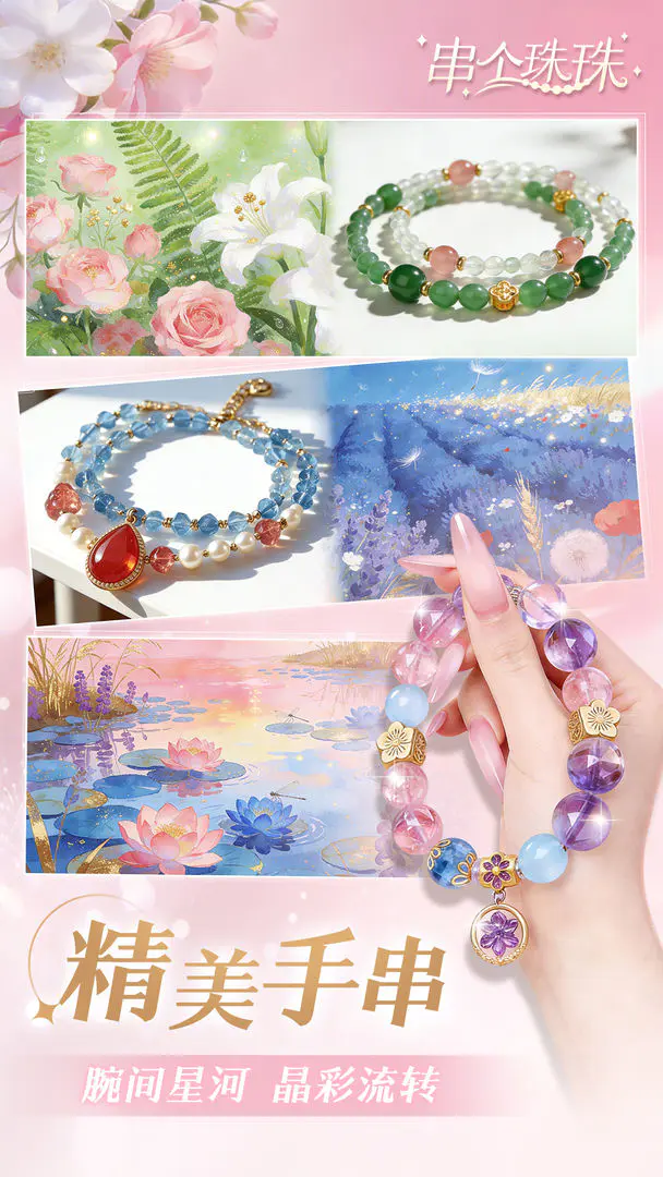 玩家要通过一系列新颖有趣的小游戏解锁不同种类珠子,获取更多材料。小游戏既考验反应能力,又激发创造力,成功完成挑战就能得到丰富资源支持手串制作。