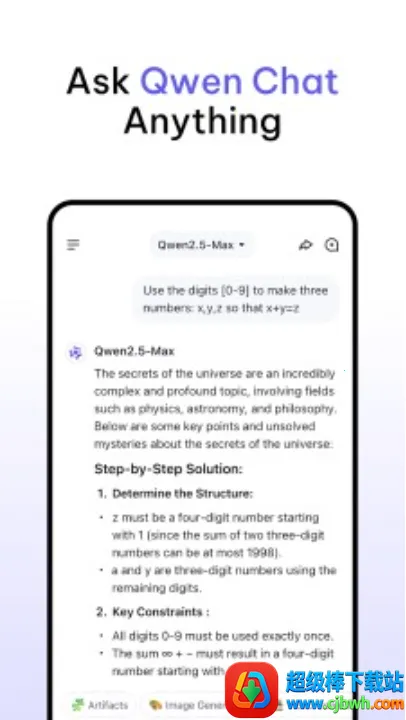 Qwen Chat2026最新版本为手机提供专业智能管家。能解答学习问题,有持续学习等功能,亮点是响应快、兼容性好、体积小,特色是可打发无聊、对网速要求低且加密隐私,界面简洁易上手。