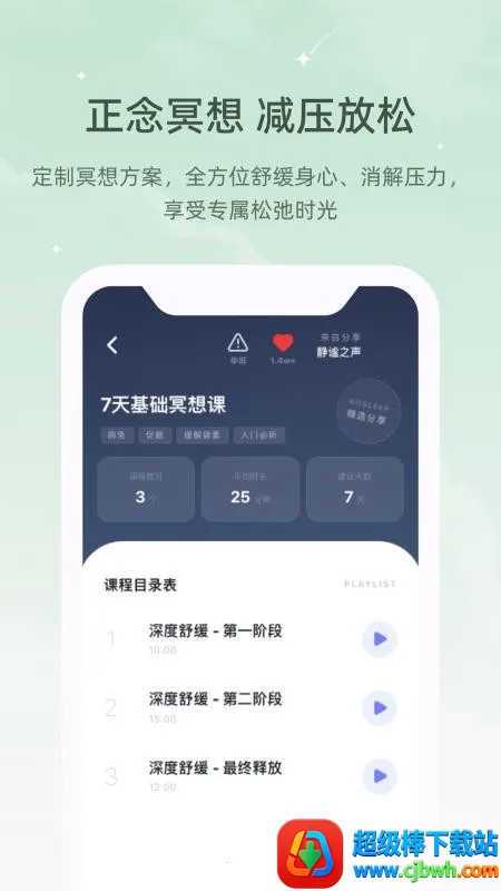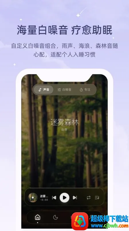4. 提供专业冥想引导和声音疗愈,从根源调整身心健康,适配不同人群,帮助迅速解压、深度助眠或缓解工作压力。早间唤醒和夜间助眠方便,能找到适合自己的白噪音和疗愈方案。睡前打开app可杜绝干扰,体验沉浸式助眠过程。