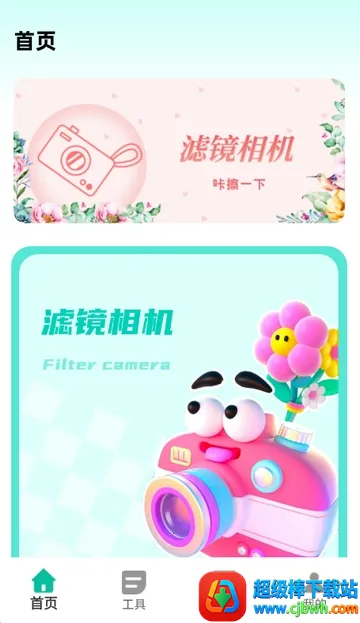 2、进入软件首页,可使用滤镜相机进行拍摄等