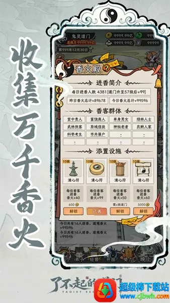 3. 香火玄学:在香火殿求签问卦,根据结果灵活应对,好运时让香火钱翻倍,大凶时快速关山门避难。