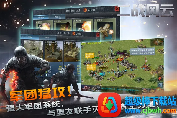 2. 强大军团系统:能创建属于自己的军事联盟,军团成员可协同作战,运输资源、军备,共享补给,共同建设军团城市,生产高级军备,独显领导才能与个人魅力,收获战友情。