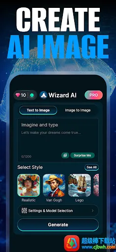 Wizard AI2026官方正版是功能强大的AI生成工具软件。输入关键词可生成各类艺术图等,能自定义参数。还有语音、搜索功能,可保存分享图片视频,能生成音乐,是充满可能的智能生态系统。