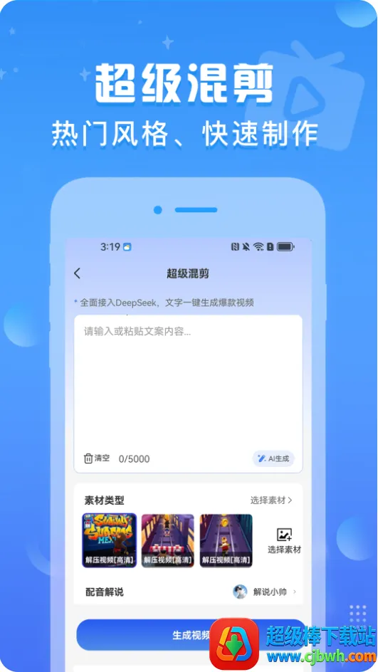便捷视频创作:剪辑系统融入 deepseek 大模型,提供丰富剪辑模板,导入手机视频自动完成剪辑,支持文字转视频,依文字需求制作优秀视频内容。