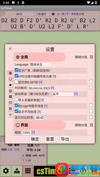 3. 全面的成绩统计与管理:实时生成练习数据图表,可对比历史成绩变化趋势。支持将成绩备份到本地文件、csTimer的服务器或Google存储。拥有丰富的成绩统计功能,如显示平均标签等。