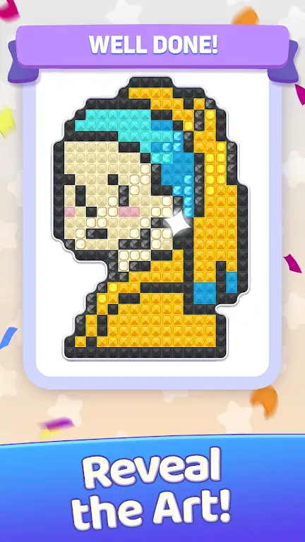 玩家可通过对闪亮钻石分类整理,揭示富有艺术感的像素画面,发挥创造力和策略思维,享受宝石艺术绘画乐趣。