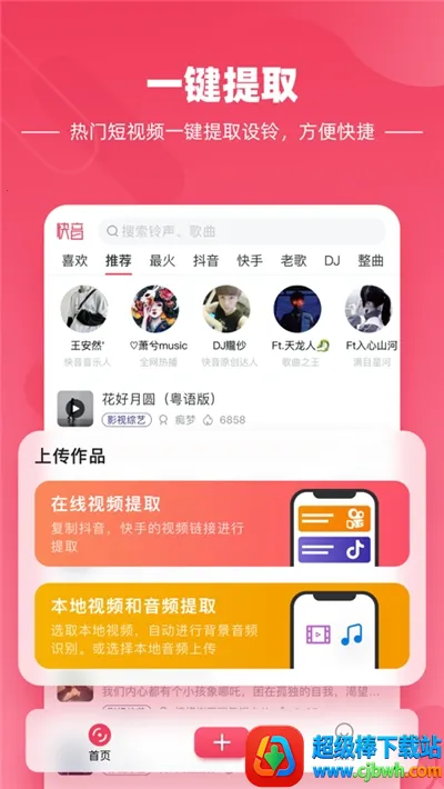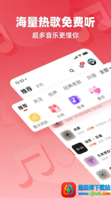 如果你想免费听歌,那快音这款软件绝对值得拥有!它是一个超棒的听歌大全。这里音乐种类超丰富,有经典老歌、欧美日韩流行金曲、电音、古风、影视热曲等等,精细的铃声分类能满足你的各种需求。海量曲库让你不愁没歌听,不管是车载嗨歌还是抖音快手热曲,统统都有。而且所有音乐都能免费下载,你还能把喜欢的歌设成手机铃声。它的音质超棒,是超清音源,能还原高透声音质感,带你感受真实现场。除了听歌,它还有很多有趣功能,比如能一键音视频分离、剪辑音频、去除水印。你还能在这里直播交友,分享自己哼唱的片段。操作简单,界面美观,真的是一款实用性和娱乐性兼具的音乐软件,赶紧来下载体验吧!