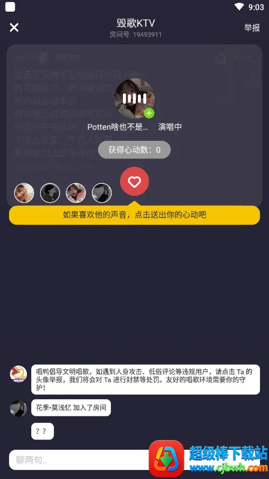 2、丰富音乐板块:设有房间抢唱、话题广场、改编、方言、古风等多个板块。