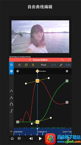 4. **视频剪裁**:任意比例裁切,去除不需要的画面区域。支持自由曲线编辑、钢笔工具、光流补帧、Saber光效、木偶工具、运动跟踪等专业功能。