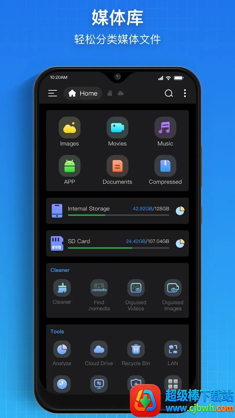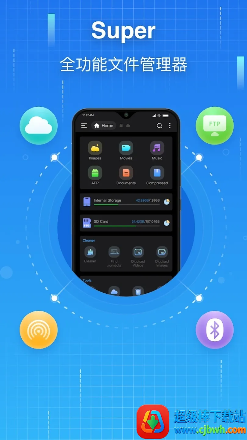 Super文件管理器2026可查看手机内部存储、SD卡及USB OTG设备文件,能清理大文件与重复文件,自动归类图片等。支持云盘直连、批量操作、压缩解压,还有应用管理工具,操作方便,新手易上手。