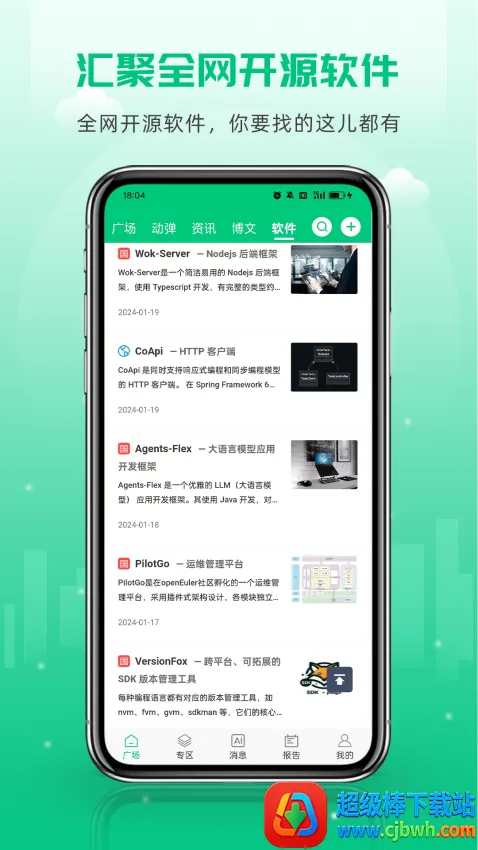 如果你想知道开源社区是什么意思,那这款开源社区软件就能帮到你。它给程序员和对IT感兴趣的人提供了交流平台,里面有大量IT从业者。在这里,你能查询各种开源动态和资讯,所有资讯都能在线浏览,超方便快捷,还支持安卓版本,可直接下载到手机。软件亮点多多,能了解所有程序员相关信息,还能按需求编辑发布动态,会根据浏览习惯推送感兴趣文章。特色也很突出,能自由选择是否查看行业技术报告,有新消息会推送提醒,资讯种类全。操作简单,下载打开APP就能看到推送资讯,广场页面能实时阅览最新推送,还能翻看朋友圈动态、编辑发布,查看技术干货、开源报告提升技术经验,消息页面及时获取最新信息。对喜欢IT或从事IT行业的人来说,这软件超棒,能分享技术、传播知识,赶紧下载体验吧。