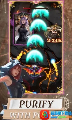 3、净化之力运用:掌握强大净化魔法能量,发射密集净化弹幕攻击敌人核心,削弱黑暗束缚力量,实现灵魂救赎,为世界带来生机。