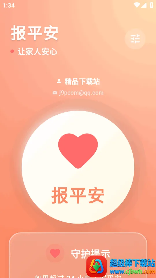 软件界面设计极简,大字体大按钮,操作简单,让家人放心。它支持手机号或邮箱提醒,无感守护,不监控不追踪,只记录平安。