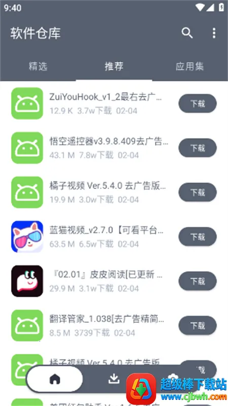 软件仓库分享版是个超实用的资源库工具。它能帮你找到各种软件和游戏资源。使用方法很简单,先下载本站提供的软件仓库App并安装打开。进入首页,精选板块有今日更新且无广告的精品应用;推荐板块各类精品软件齐全;应用集板块包含丰富合集,点开就能下载应用。你还能直接在顶部搜索框输入关键词找软件。它优势超多,免费且绿色无毒,可放心用。会尽快升级软件,让你快速体验新功能。能搜索各类移动应用,支持一键下载安装,免去繁琐操作。亮点是提供详尽资讯,助你做决定。常见软件不断更新,整合各类软件成好用的软件库,内容分类方便查找。每天更新很多宝藏软件,像音乐、阅读、去广告拦截工具等应有尽有,能满足你多样需求,带来极大便利。