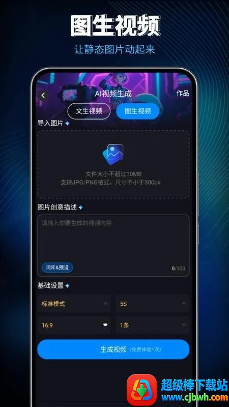 2. 图片生成视频:导入静态图片,通过AI技术将其转化为具有动感的视觉内容,提升表现力。