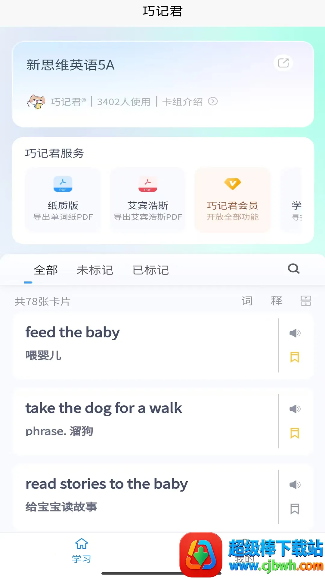 巧记君安卓版是学习英语单词的实用工具,专注高效单词记忆与发音学习。它将科学与趣味结合,提供多种学习模式,多维度强化记忆。还有丰富学习专区、服务及记录展示,助用户告别死记硬背,轻松学单词。