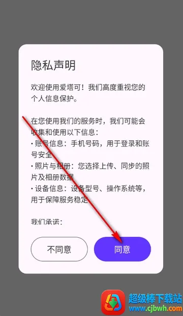 1、打开爱塔可app,点击同意隐私政策