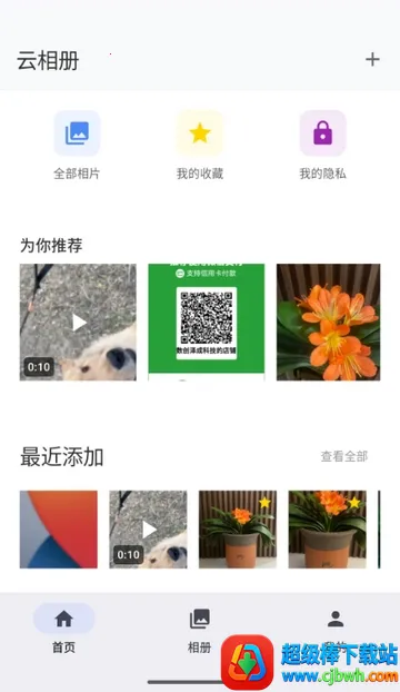 3、进入软件首页,可查看最近添加相册等