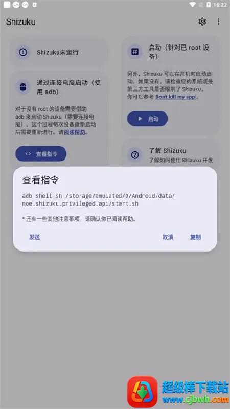 安卓11以下版本的手机需要使用电脑通过ADB命令来启动Shizuku;