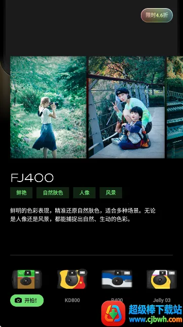3、纯净拍摄体验:胶片还原度高,基本无色差,无广告和弹窗干扰,能让喜欢胶片风的用户找到追求的复古感,保留照片真实质感。