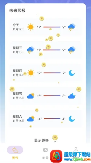 繁花天气预报最新手机版是一款天气查询应用,能实时更新气温等气象信息。界面以花卉为主题,清新雅致。提供精准预报、多日预览和生活指数提示,操作简单,兼具视觉与实用,给用户温暖陪伴。