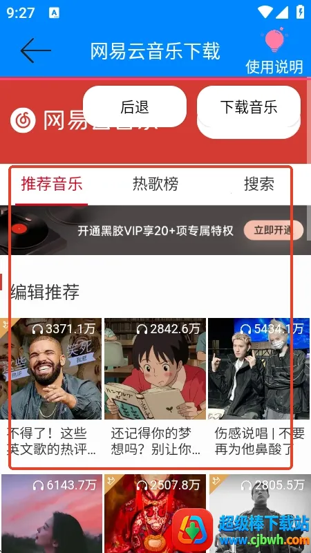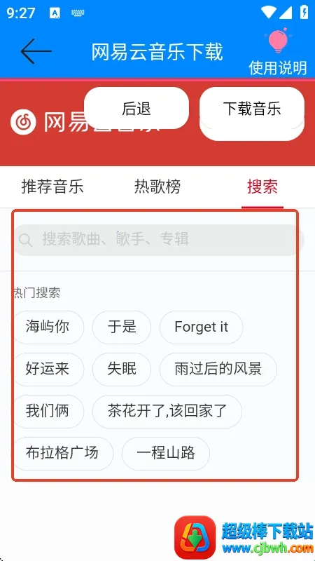 3. 资源丰富:歌曲库与网易云音乐完美对接,网易云音乐有的歌曲在这里都能搜到下载,各种类型音乐应有尽有,能满足不同音乐爱好者的听歌需求。