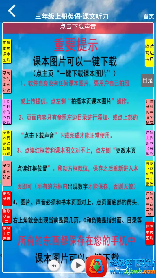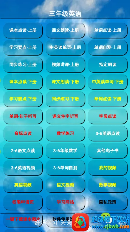 这款英语学习软件超棒!它能满足三年级学生全场景知识学习需求。有全新课本听写教学模式,涵盖丰富内容。独特教育模式,带来高质量课本点读教育。双语读音准确清晰,图片高清不伤眼。与教材同步,方便预习复习。单词跟读、听力练习等功能,全方位提升孩子英语能力。通过跟读评测提升听说水平,还有多种练习激发兴趣。无论是点读、自测还是游戏教学,都助力孩子轻松学英语,是学习好帮手,值得下载!