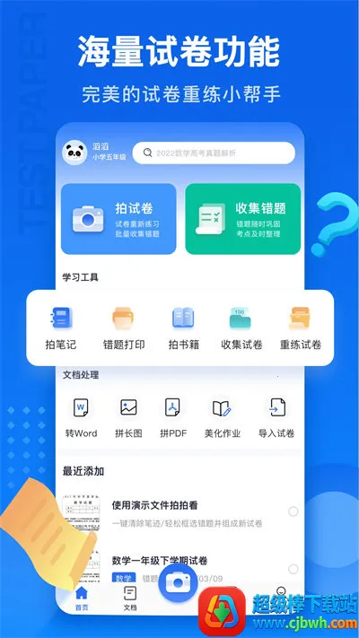 试卷100app安卓版是试卷错题整理软件,能高清扫描,去除做题痕迹生成新试卷。可智能擦除笔迹、涂鸦涂改、收录错题并分类管理,还有丰富文档处理功能,如图片转文档等,方便复习与打印。