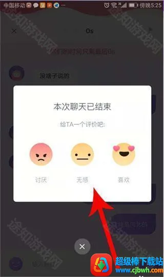 5、倒计时结束后,你与对方的对话窗口便会关闭,打开评价弹窗,点击列出的选项即可。