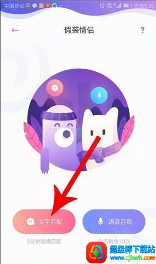 2、进入到"假装情侣"界面,点击"文字匹配"按钮。
