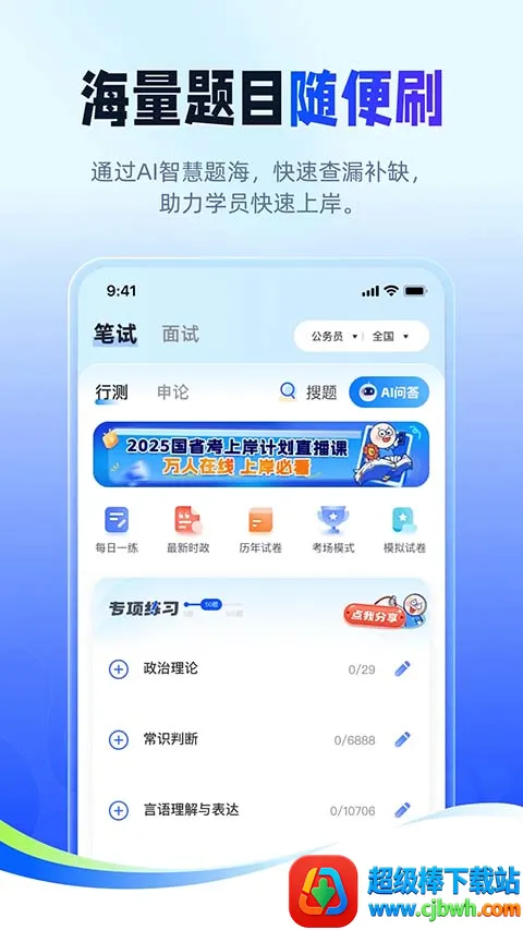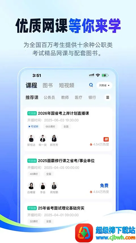 提供优质课程内容,覆盖公考教资考编事业单位等公职考试,助用户全面了解考试内容及重难点,针对薄弱环节训练,提高学习效率。