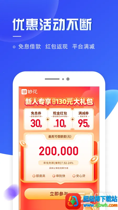 够花是财务管理和记账助手应用,助用户管理消费理财与预算。能记录消费、生成报表图表,有智能预算功能。提供多种还款方式,放款快、费用低、额度灵活,注册享最高20万额度,助您实现理财目标。