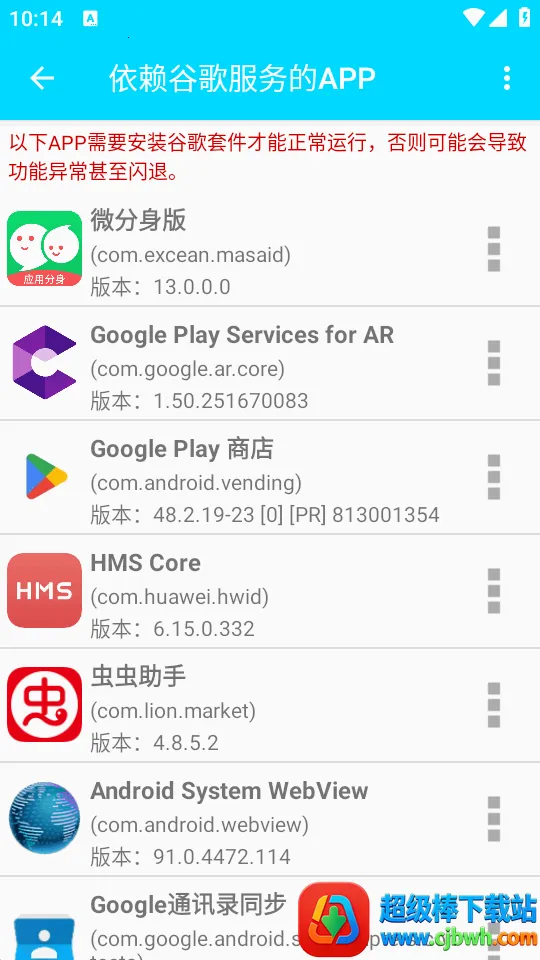 3、这时就可以看到需要谷歌套件的应用,不安装套件可能导致闪退。