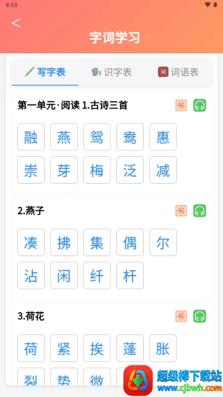 1、软件内置海量生字词资源,涵盖拼音笔顺组词造句等多维讲解,支持约8000 个汉字与60000 个词语检索,满足学生随时查阅与巩固需求。