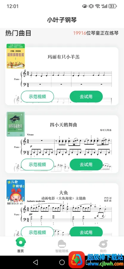 3、海量曲谱资源,从入门小汤到十级考级曲目全覆盖,支持免费试练,满足全年龄段学习需求。