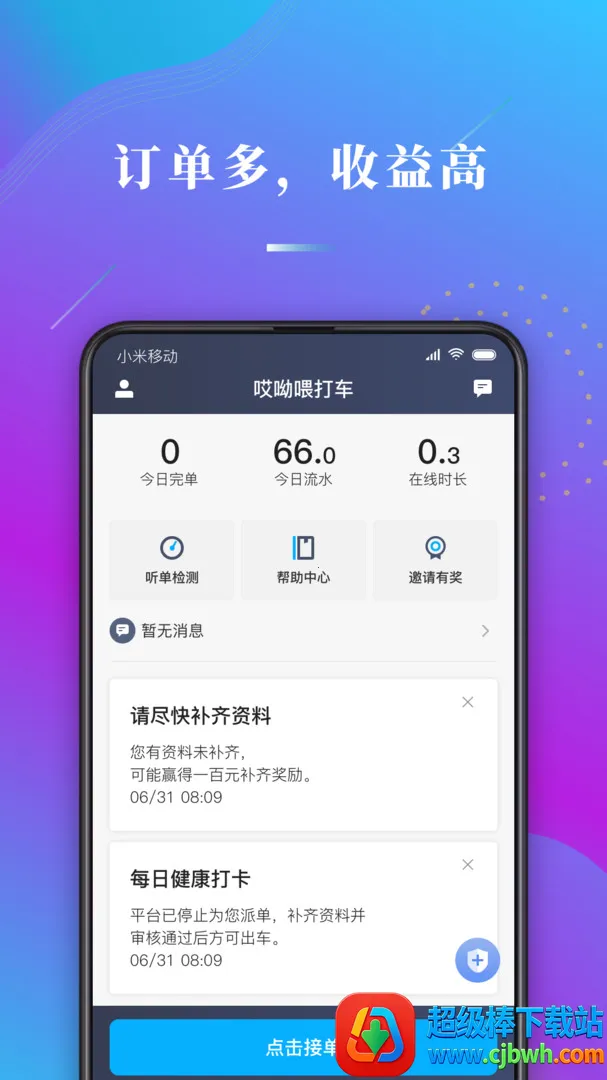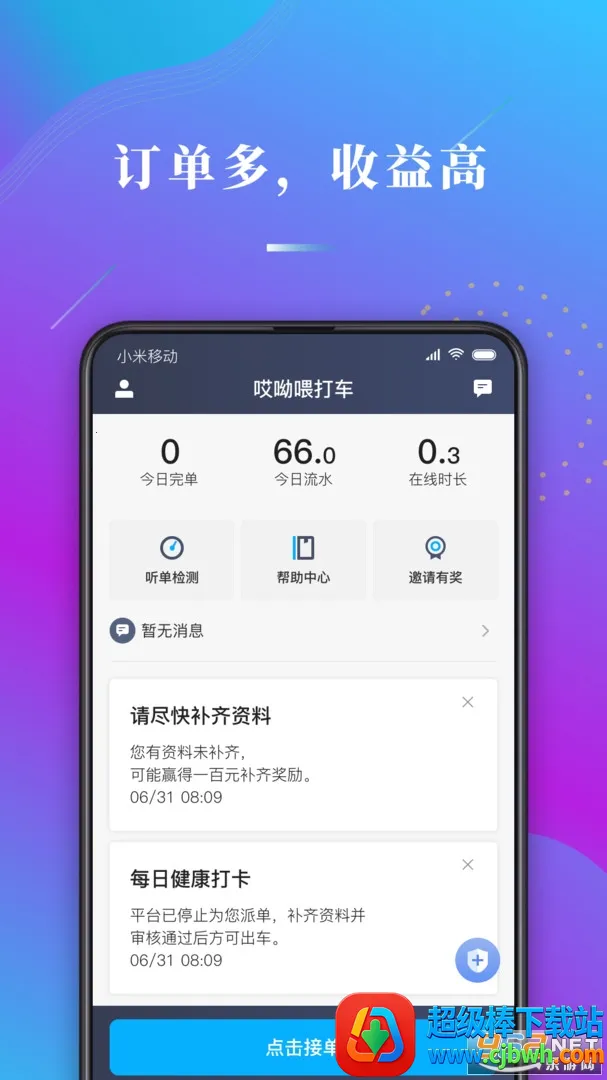 哎呦喂司机能跑吗?答案是肯定的!这款软件专为司机打造,能帮您解决不少接单难题。它会自动同步客户发布的出行订单,让您即时接单,第一时间获取乘客位置,接送乘客超方便。这里订单超多,收益可观,提现还秒到账。而且它是三证齐全的合规平台,司机入驻专人审核,安全有保障。平台有超百万核心司机,覆盖全国多渠道优质资源,在全国上百城市都能稳定运营。其特色功能一体化高效管理,提供一站式产品解决方案。内置详细接单工具,出行账单记录清晰,还有帮助中心助您了解服务规则。加盟流程也简单,填写加盟信息、等待审核、参加岗前培训,就能开启接单赚钱之旅啦,让您出车更省心,轻松增加收益。