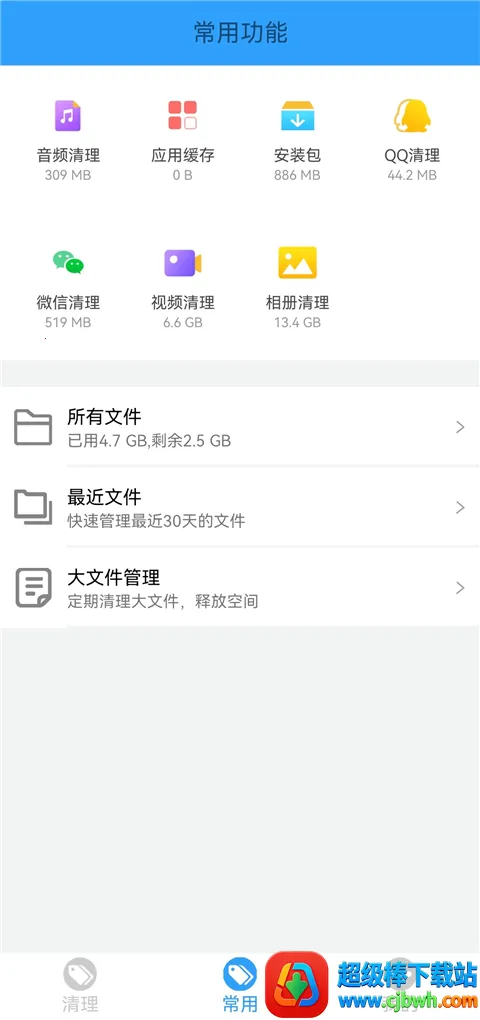 1. 能快速扫描手机内的垃圾文件,一键释放存储空间,让手机更清爽。