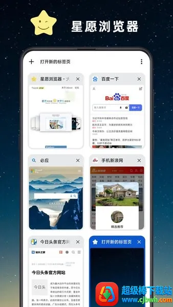 星愿浏览器手机最新版是款出色软件。其界面年轻新颖,首页设计简单,功能一目了然,资料载入快。优势显著,能开多个页面,减少系统消耗,操作灵活。安全可靠,带来流畅上网体验,多解析度选择,多线程下载便捷。还支持多端互联同步,基于 Chrome 内核二次开发,极简强大。屏蔽广告,无弹窗推送,有收藏、密码等管理功能。交互极简,资源占用少,速度快,可自定义,媲美大厂产品,无后台干扰,给人淋漓尽致的浏览体验。