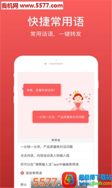 1. 快捷常用语:多种常用语一键输入,打字更快速方便。