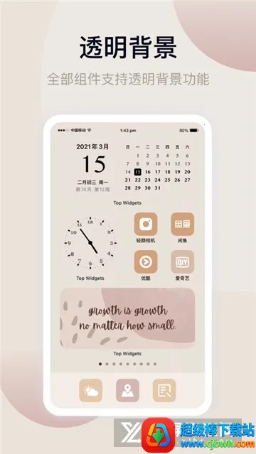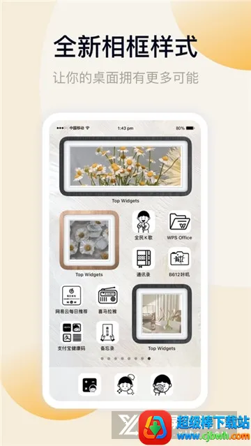 Widgets手机桌面小部件可给音频应用装各种小部件,助你更好用音频播放器,能显示曲目等内容,还能下载壁纸和桌面主题。有丰富小组件库,功能全,适用于iOS14设备,可简易设置,自定义主屏幕。