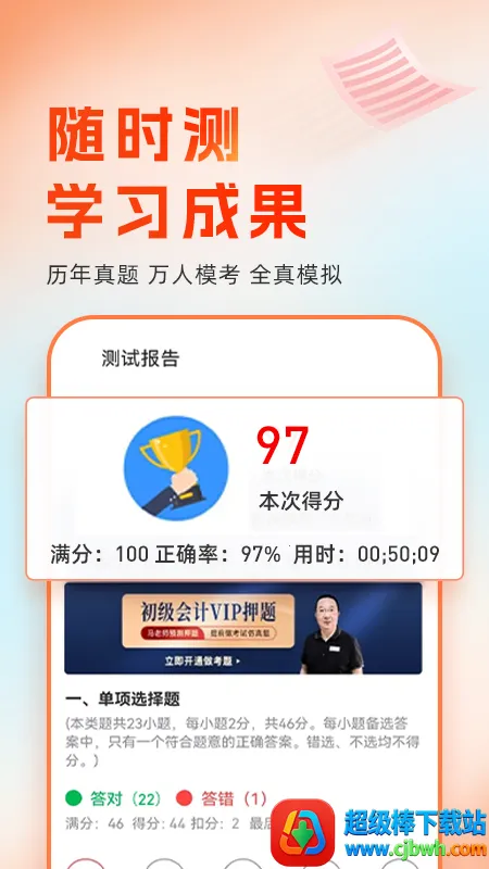 2. 题库练习与模拟考试:多种题库练习模式,搭配视频课程巩固知识,提供各级会计职业资格考试模拟题和真题解析,熟悉题型与解题技巧。