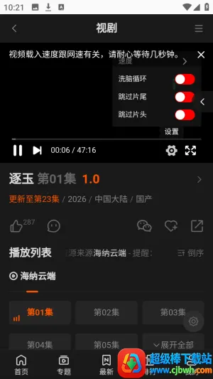 3、体验超舒适,界面分类清晰,可按类别快速筛选内容,还能智能调节清晰度,搭配倍速播放、跳过片头片尾等实用功能。