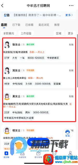 1、查看最近活跃的求职者
