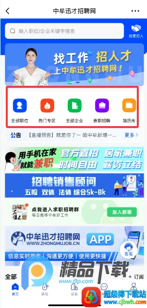 1、在首页横幅处点击全部职位